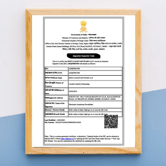 As a leading manufacturer and exporter, SOCCA SANITARYWARE maintains a strong presence in global markets. Its dynamic marketing team and robust engineering workforce back its ambitious growth plans, while an extensive network of after-sale service centers ensures customer satisfaction.